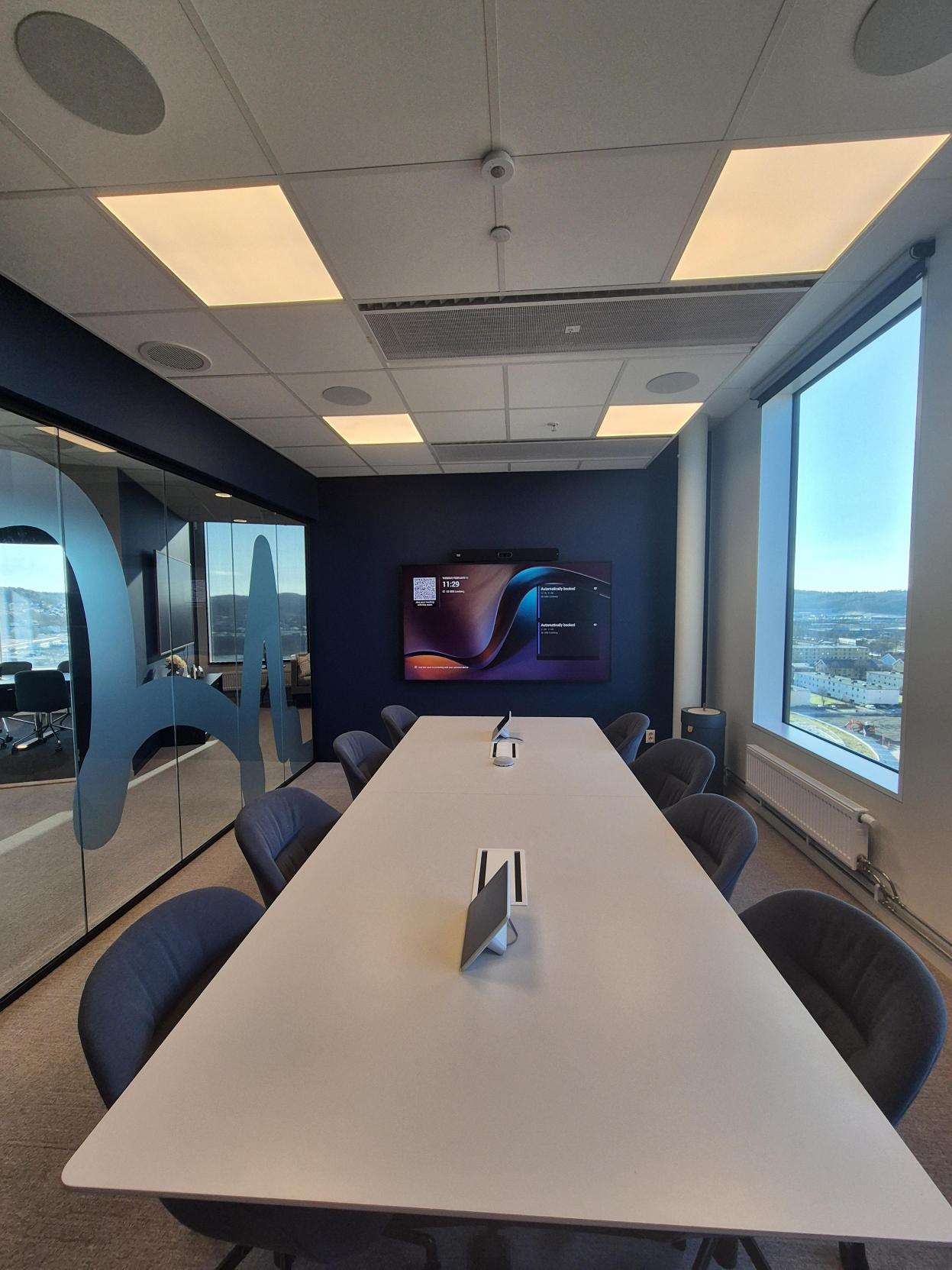 Resultatet blev Cisco-hårdvara med Teams, Miracast och skärmvägg – optimerat för deras hybrida arbetssätt och många olika mötesformat.